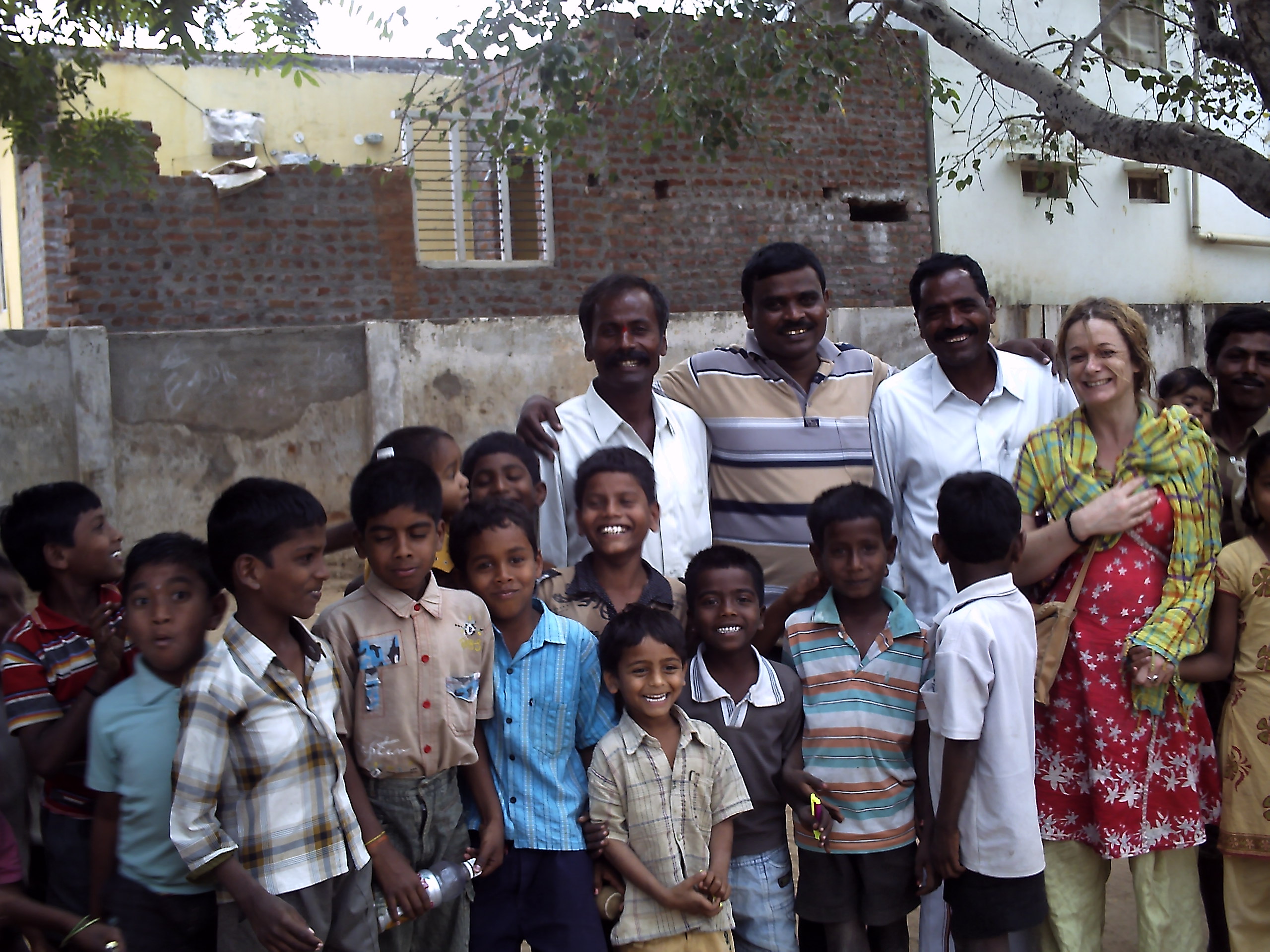 When the food was done and dusted there was another unexpected turn of events. Ciara and I thought we were jumping in the car and heading back through Puttaparthi to the orphange we’d passed on the day of arrival. Wrong! Mohan informed us we were going to the village school. We were not happy about this but he told us that some of the kids were orphans, so we went along for the ride to see what the situation was. What followed next somehow made everything all right, but not before we had another disappointment. It was only a very short drive from the temple to the village school, probably less than a quarter of a mile along what was more like a dusty track than a road. We were very disappointed to see that along the way there were people who had not taken part in the feast, probably because they had been excluded. We also saw a fairly elderly woman laying down outside one of the ramshackle houses who was obviously lame; these were the very people that we wanted to help but it was apparent that they had not been invited to eat. Our opinion of Mohan dropped even further when just before returning to Puttaparthi, we were invited to take tea with him in one of the houses. It turned out that the man of the house was one of Mohan’s relatives; giving clarity to the fact that he had simply used us to feed people who were not really in that great a need, in a village where he had connections, in order that his own standing in the community would be raised.